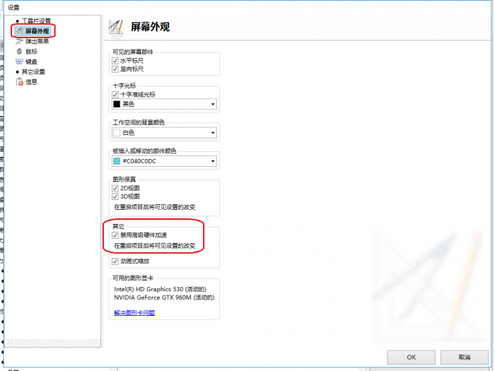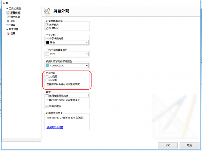 - 关闭选项图形保真 2D视图 ,图形保真 3D视图 ,并点击OK 键确认。