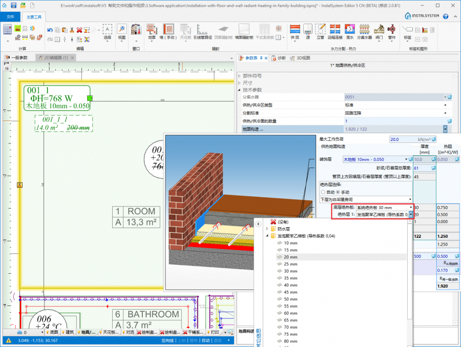 本课程所使用的项目文件:一独栋住宅地面和墙面辐射系统的设计(课程示例)。