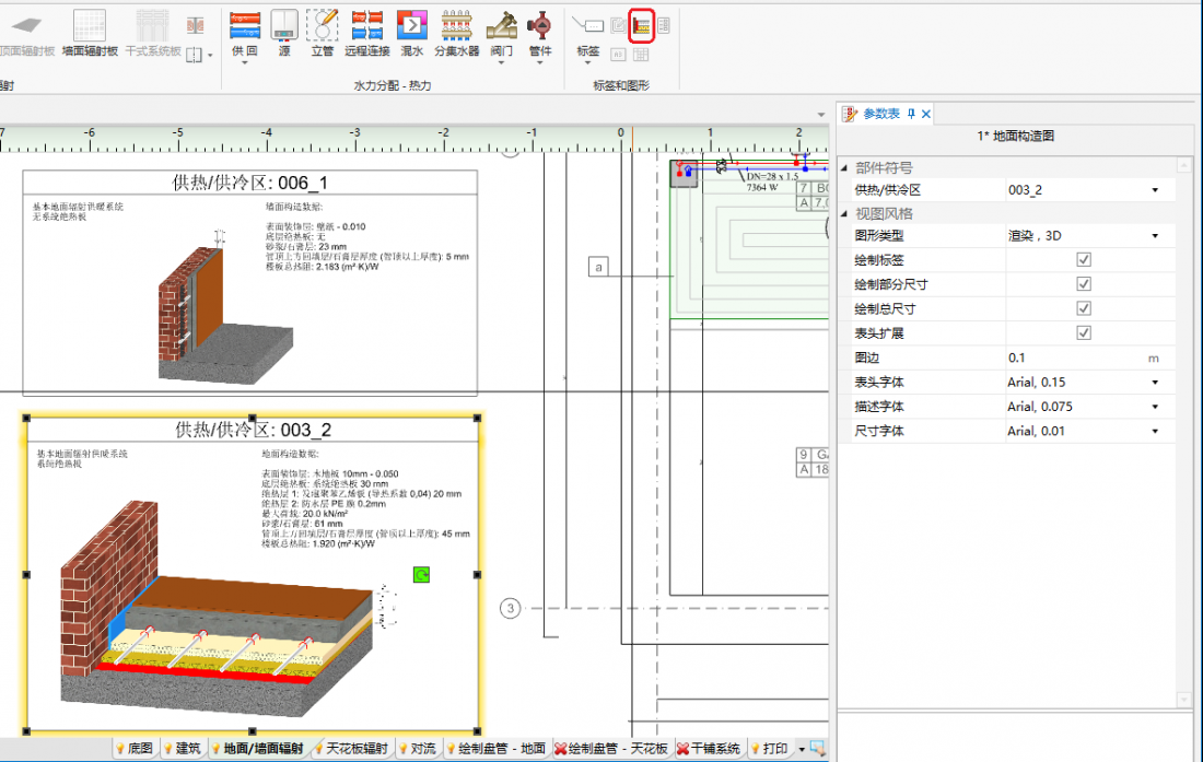 - 插入盘管辐射构造断面图,如有必要,可重置比例和配置。