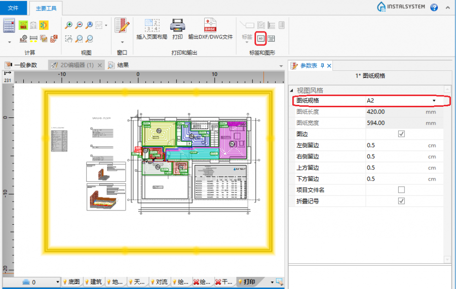 - 在参数表 中选择图纸规格。