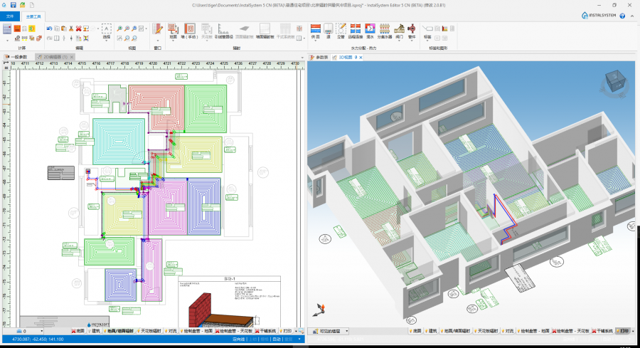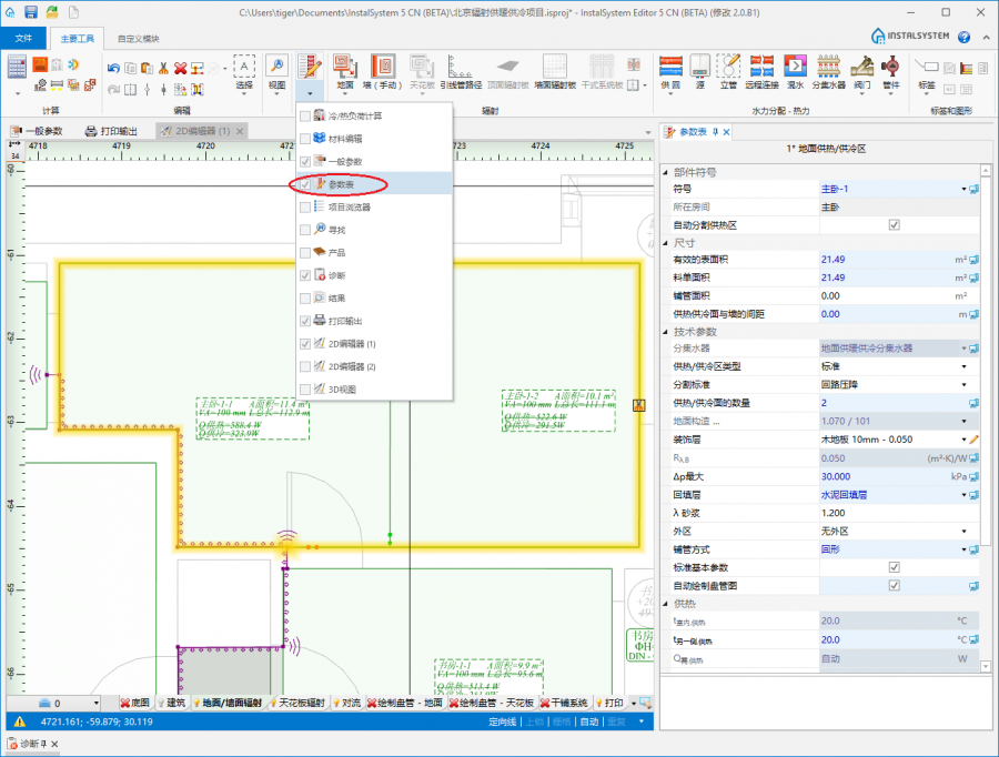 - 肉眼检查建筑结构以及系统布置的工具是3D视图。3D视图可始终打开着,以便在编辑期间不断地检查系统的正确性。如果能同时使用两个显示器,则特别有利于设计工作。注意,使用3D视图会减慢程序的运行。当计算机运行较慢或设计一大型项目时,最好是让3D视图仅用来验证项目的状态,而不总是打开3D视图窗口。