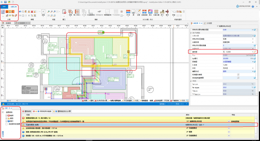 使用 InstalSystem 5 开展设计时系统数据输入的基本方式就是图形编辑。设计的内容包括在图纸中放置对象(安装组件),并在它们之间建立适当的连接。仅在建筑楼层的平面图上进行工作。所设计的装置可以以多种方式进行修改,安装的部件也可以被复制,还可以在上面进行其它操作。