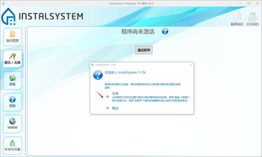 更多信息,见: 安装、激活、更新INSTALSYSTEM 5 软件包