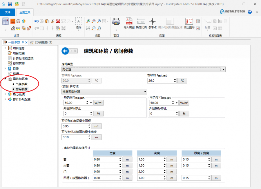 建筑与环境 包括了建筑物的地理位置信息和默认的建筑结构部件的数据信息,如:所需的供热或供冷的输出指标。
