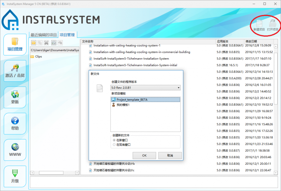 - 现有文件 - 当打开一现有项目文件时,可以选择某一程序版本以进一步处理文件。这使得可以使用该项目创建时所使用的软件版本来继续对该项目进行相应的处理。