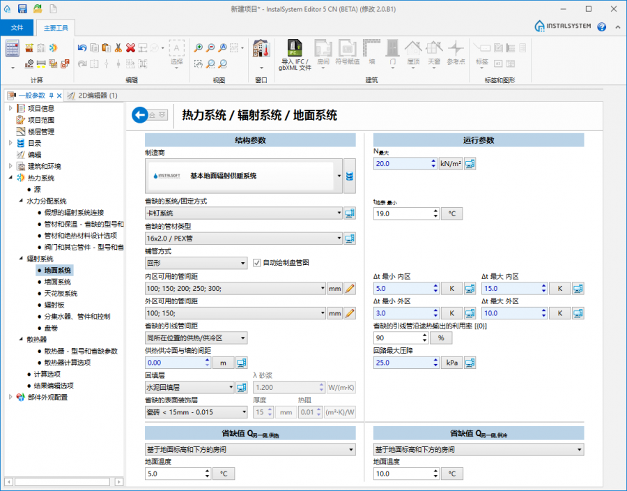 在此,在一般参数中,可以为某个项目定义几组目录。当编辑系统或选择部件和进行计算时,就可使用这些目录中的所有产品。根据软件包配置,各种类型和各种范围的目录都可使用。目录可以包含通用部件数据或来自指定制造商的部件的数据。 - 建筑数据 - 可对正在设计的系统定义建筑物的基本数据。