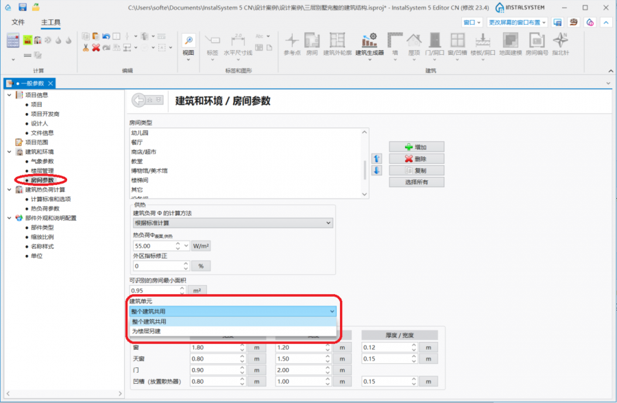 可以对自动的建筑单元 进行扩展控制。在项目开始时,在一般参数 中,可对建筑单元 的创建方法进行如下选则: