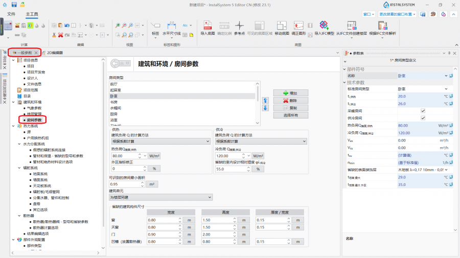 - 房间参数 位于一般参数 窗口, 建筑和环境 选项卡中。