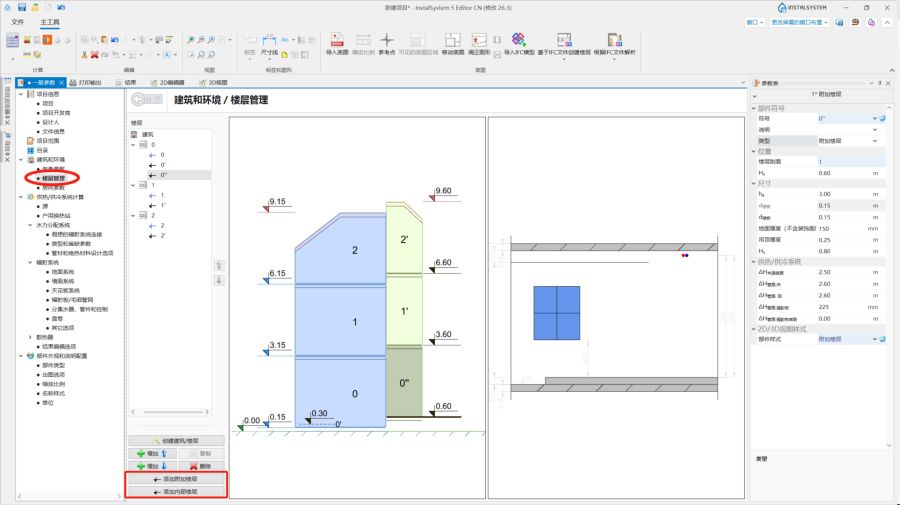 - 楼层管理 位于一般参数 窗口,建筑和环境 选型中。