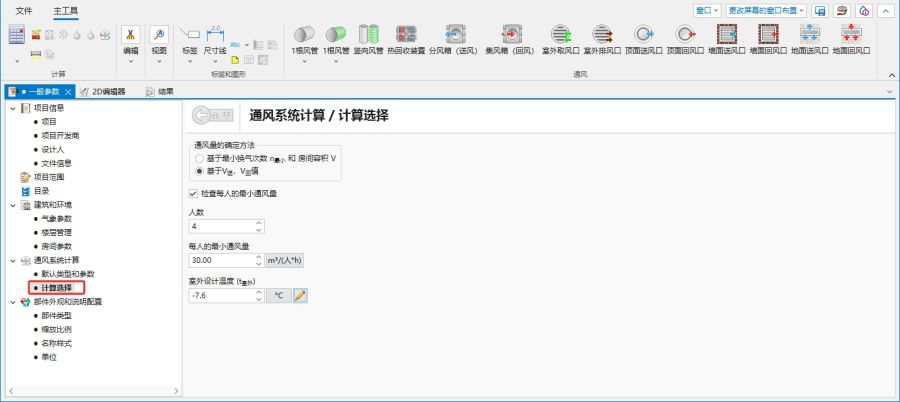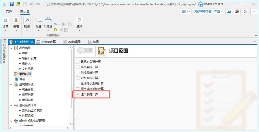 - 项目范围 - 选择项目范围: 通风系统计算 。