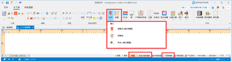 - 带有墙面辐射板/毛细管 和顶面辐射板/毛细管网 部件的部分,不会自动生成示意图,而是转成系统部件 。