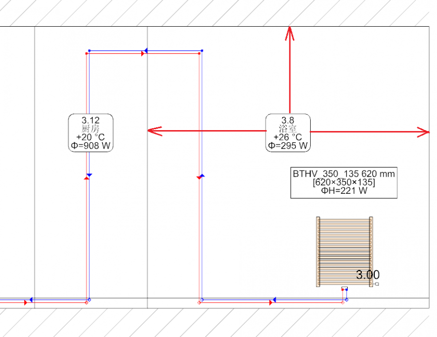 - 对于对流, 地面/墙面辐射, 顶面辐射系统计算 的起始点 : 见 示意图 - 供热系统计算.