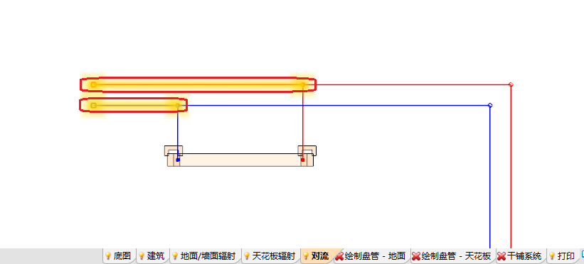 自动连接末端装置 位于2D编辑器 窗口中,当打开地面/墙面辐射 、顶面辐射 或对流 编辑器时,在主工具 的编辑 工具栏里就可找到该工具。