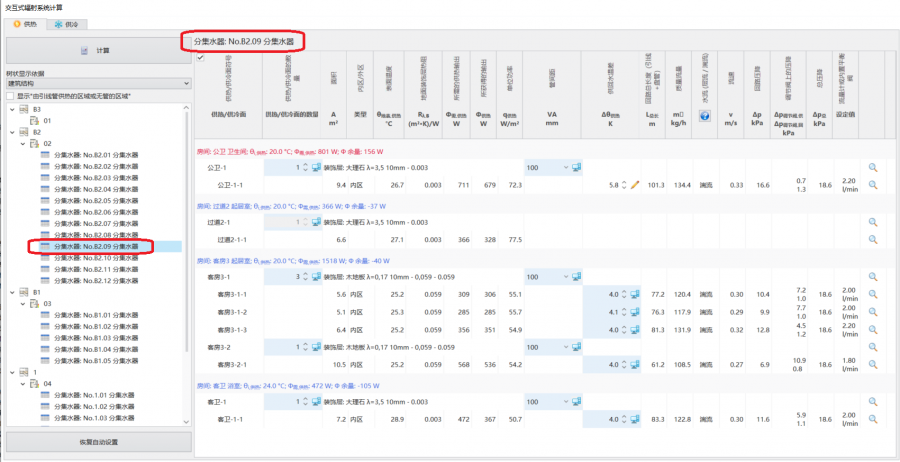- 在交互式辐射系统计算 窗口,会计算出每一回路流量计或内置平衡阀 的设定值