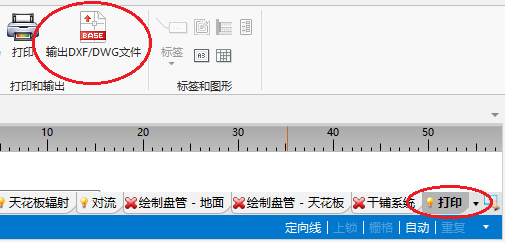 - 当打开打印 编辑范围时,在主工具 工具栏上,就可见输出 DXF/DWG 文件 功能。 该功能可将项目的图形文件输出成一个DXF/DWG文件。