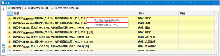 - 选择诊断窗口中所显示的某一个或某一组诊断信息所特指的所有部件