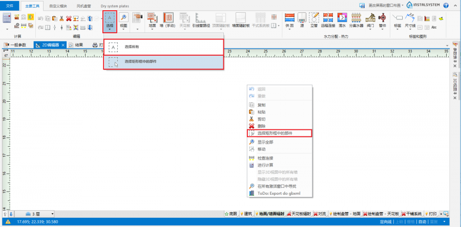 - - 在进行选择矩形框中的部件 操作时,可: