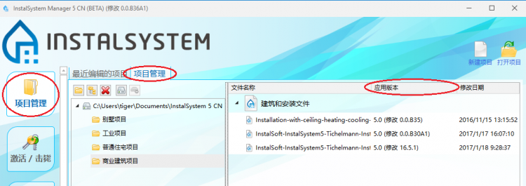 也在InstalSystem 5 CN 编辑器 中列出最近编辑的项目 - 在InstalSystem Manager 5 窗口的项目管理 标签中有项目管理。