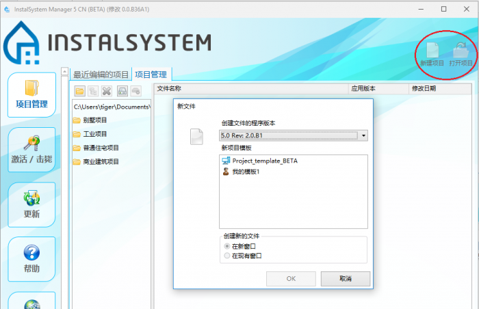 - 可在InstalSystem Manager 5 CN 窗口中创建一新项目和打开一现有项目。